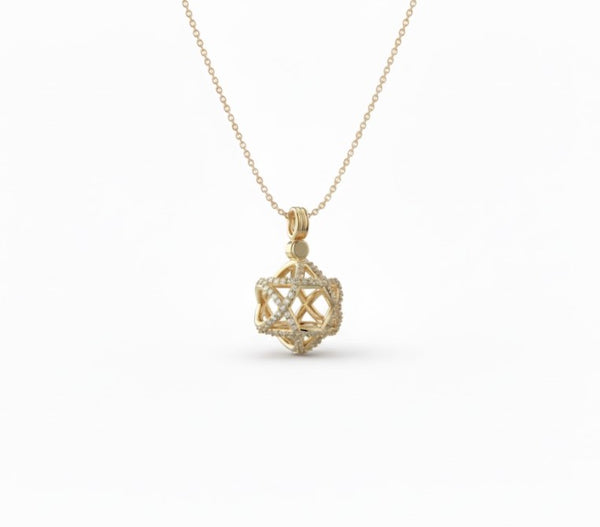 Make a powerful statement of faith and style with this extraordinary 3D Star of David pendant, masterfully crafted in solid 14K gold and illuminated with brilliant lab diamonds.