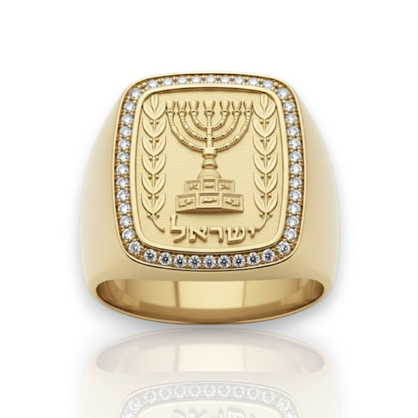 14K Solid Gold Emblem of Israel Signet Ring with Lab Diamonds  Handmade in Israel
