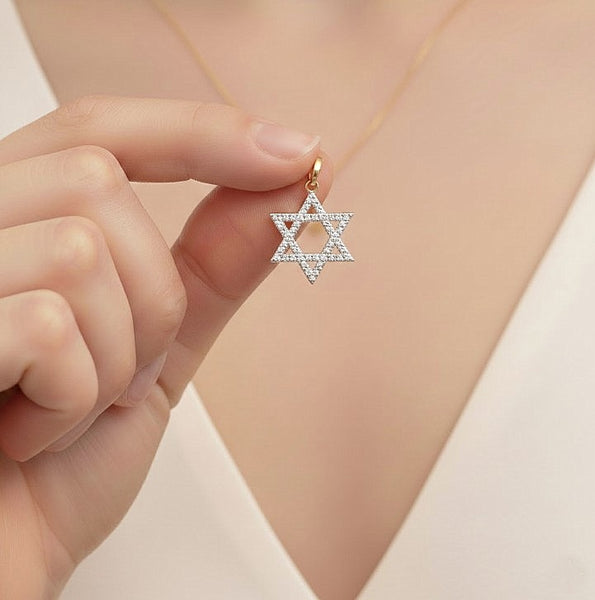 What a gorgeous piece of jewelry! A timeless piece is the 14K gold Star of David pendant. It draws attention to the triangles' entangled features, which make them impossible to separate. This Jewish pendant necklace is even more lovely and graceful because it is encrusted with glittering diamonds.