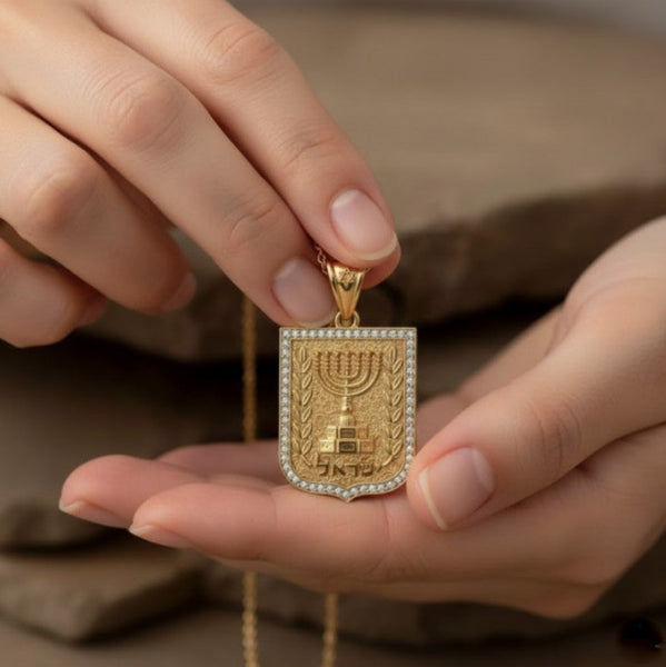 This elegant gold emblem pendant is more than just jewelry — it’s a symbol of faith, identity, and pride in the Land of Israel. A perfect gift for men or women who hold Israel close to their hearts.